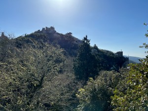 The walk from Pena Palace to the Castle of the Moors is quick and easy. From the main entrance of Pena Park and Palace, it’s just a few hundred meters away. You’ll see the brown ticket building on your right. Just like Pena Palace, it’s much faster to buy your ticket online in advance if you haven’t already bought the combined ticket for the Park and Pena Palace in Sintra + Castle of the Moors. If you haven’t bought them online, you can pick them up at the machine by the little café before you head inside.